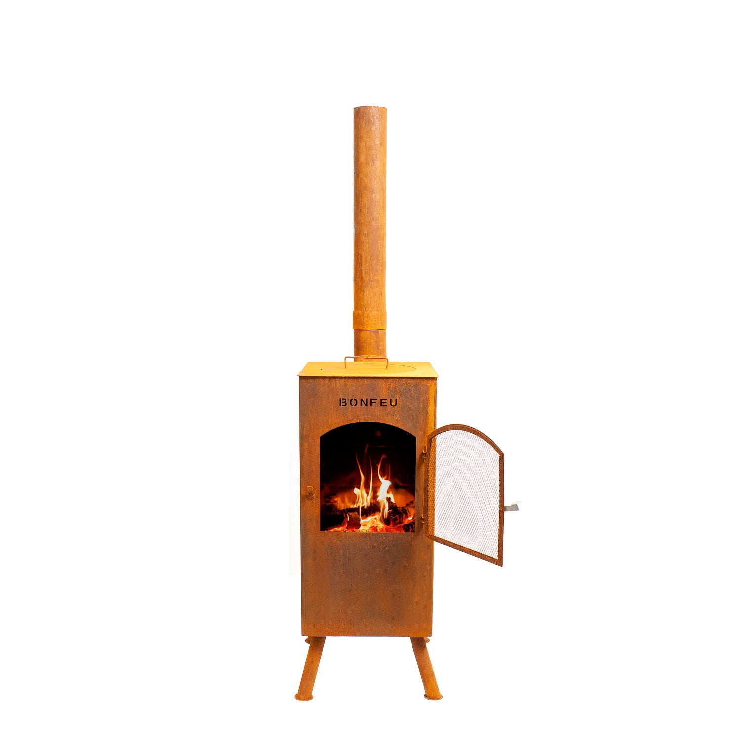 The BonCarré Black is made of steel. Steel has the property, under humid circumstances, to rust. So keep in mind that the fireplace will rust. This process can occur quickly. But do not panic, this will give your BonFeu fireplace its robust and sturdy appearance!