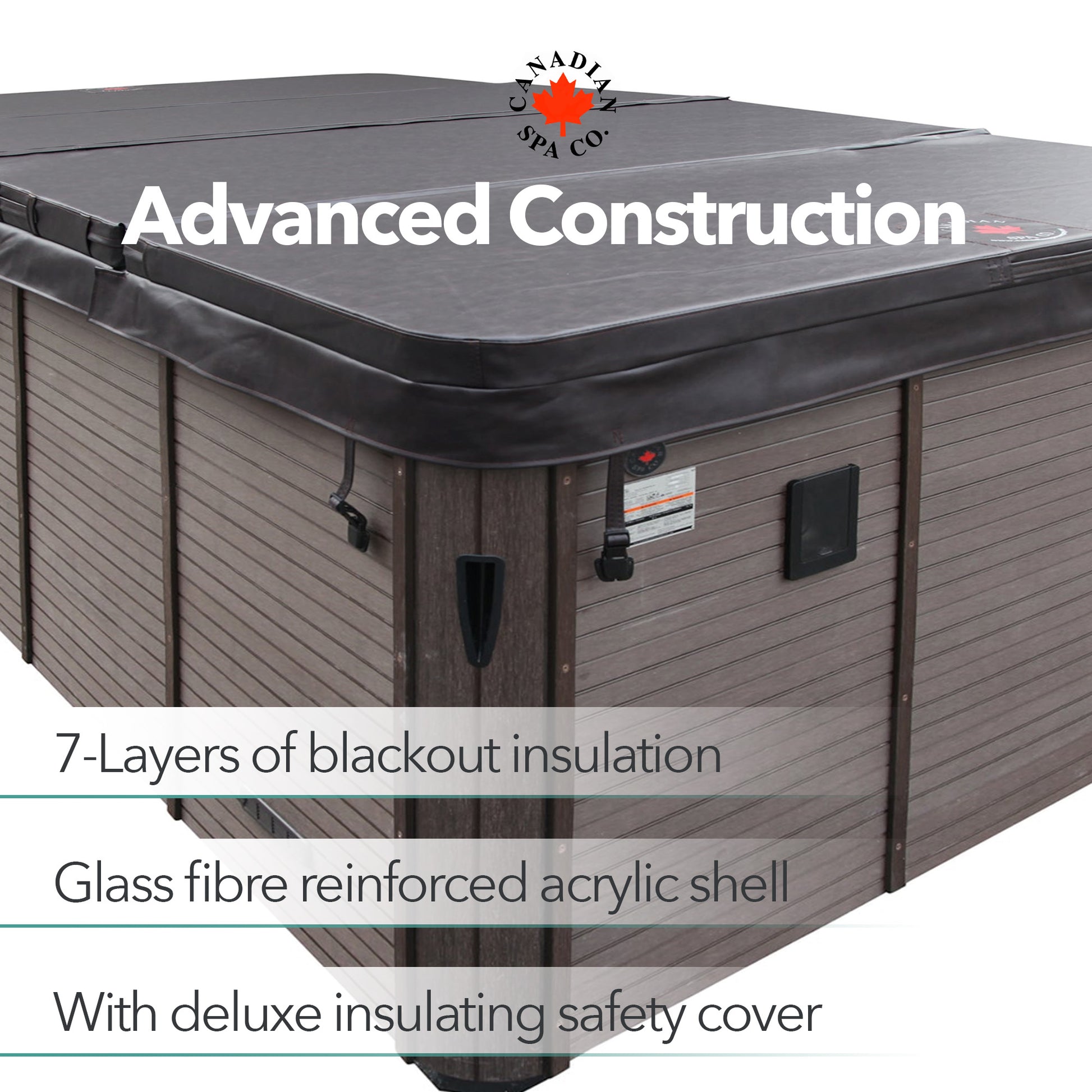 - Insulation includes high-density closed cell foam that surrounds the shell, and an infrared-lined insulated cabinet that traps the heat inside the spa - Made for Canadian winters!