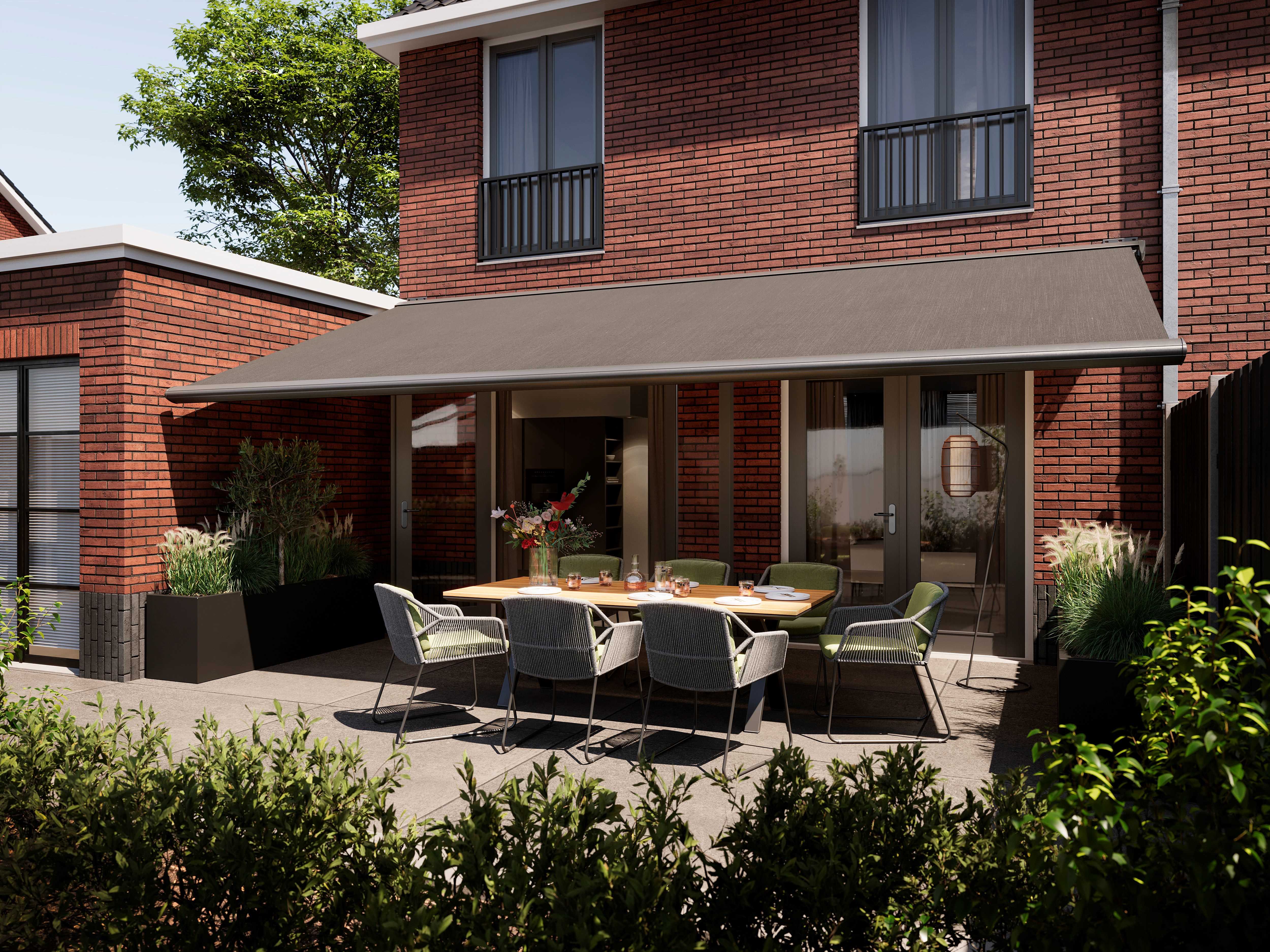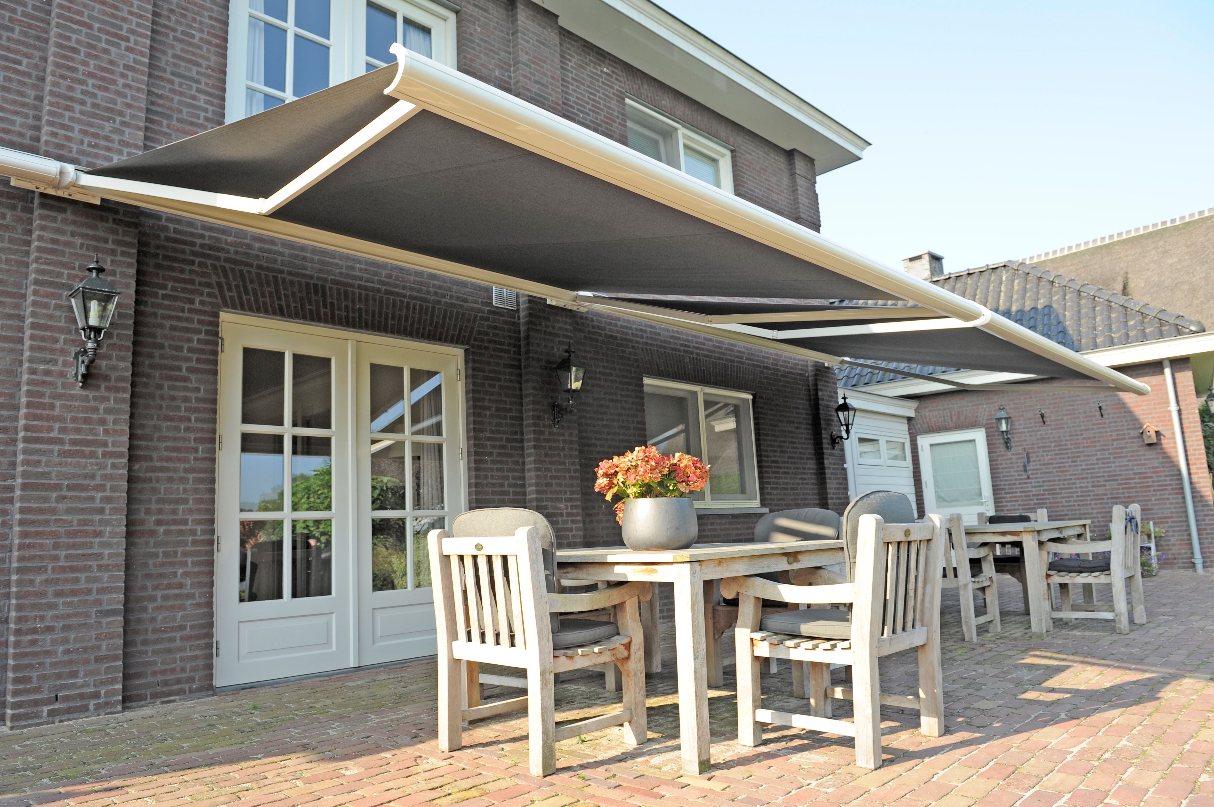 The Windermere, a highly popular terrace awning due to its design and the wide range of acrylic fabric available as standard (20 solid, 13 textures, 20 stripes). When closed it has an appealing oval shape. The adjusting device of the Windermere is covered behind beautifully finished teardrop covers. These stylistic features do not detract from its quality at all. It can be installed in almost every situation due to its unique installment possibilities. If you are looking for a stylish and high quality terrace awning, then Windermere is the model for you.